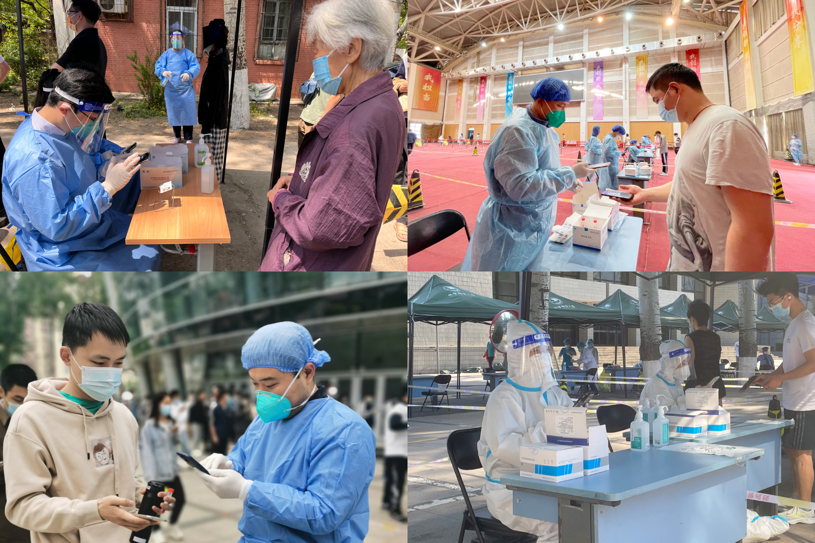 封校第二周,学院党委书记姚红侠、党委副书记董绍辉解除弹窗进驻校园,为进一步落实落细学校学院各项工作、保障师生安全健康提供了坚强后盾和有力保障。在学院党委的正确领导下,白菜官网教职工积极响应学校号召,自愿投身疫情防控相关工作。学院李铮、金昕、李劼、张忠宝、赵帅、郑霄龙、张波、李靓、刘振宇、晋文亮、孙玥佳、韩雨飞、郭子琳、徐翔、田宇、刘倩芳等教职工志愿者化身“大白”和“小蓝”,参与扫码登记、采集数据工作,协助专业人员有序开展核酸检测。