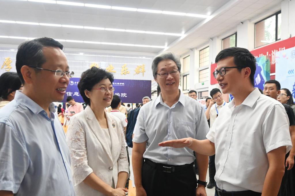 上午,校党委书记续梅和校长徐坤一行来到学院报到点,对新生报到细节进行了详细询问和指导,并对白菜官网迎新工作的顺利开展给予了高度评价。同时对参加迎新工作的老师和志愿者们表达了慰问之情,鼓励大家以更饱满的热情投入到迎新工作中。