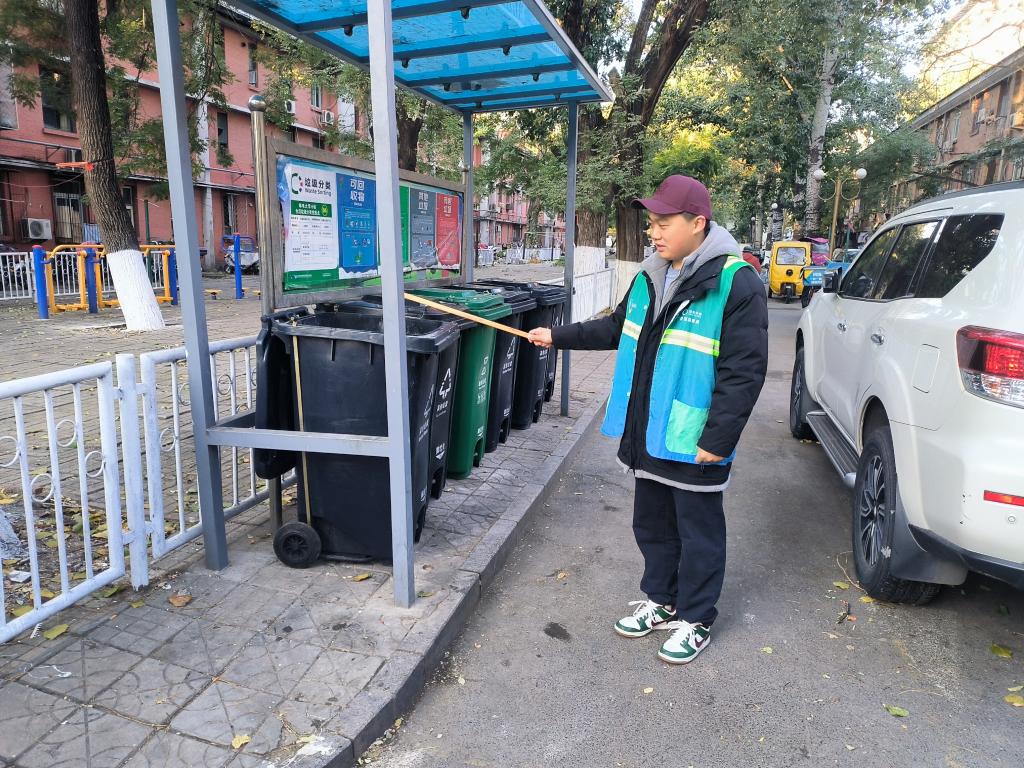 在西土城校区,学院组织开展了西土城校区南家属区桶前值守服务,引导居民正确进行垃圾分类,维护家属区垃圾桶周围环境清洁,不仅为改善学校和市容市貌做出贡献,也增强了同学们的分类意识,推动了绿色校园建设。
